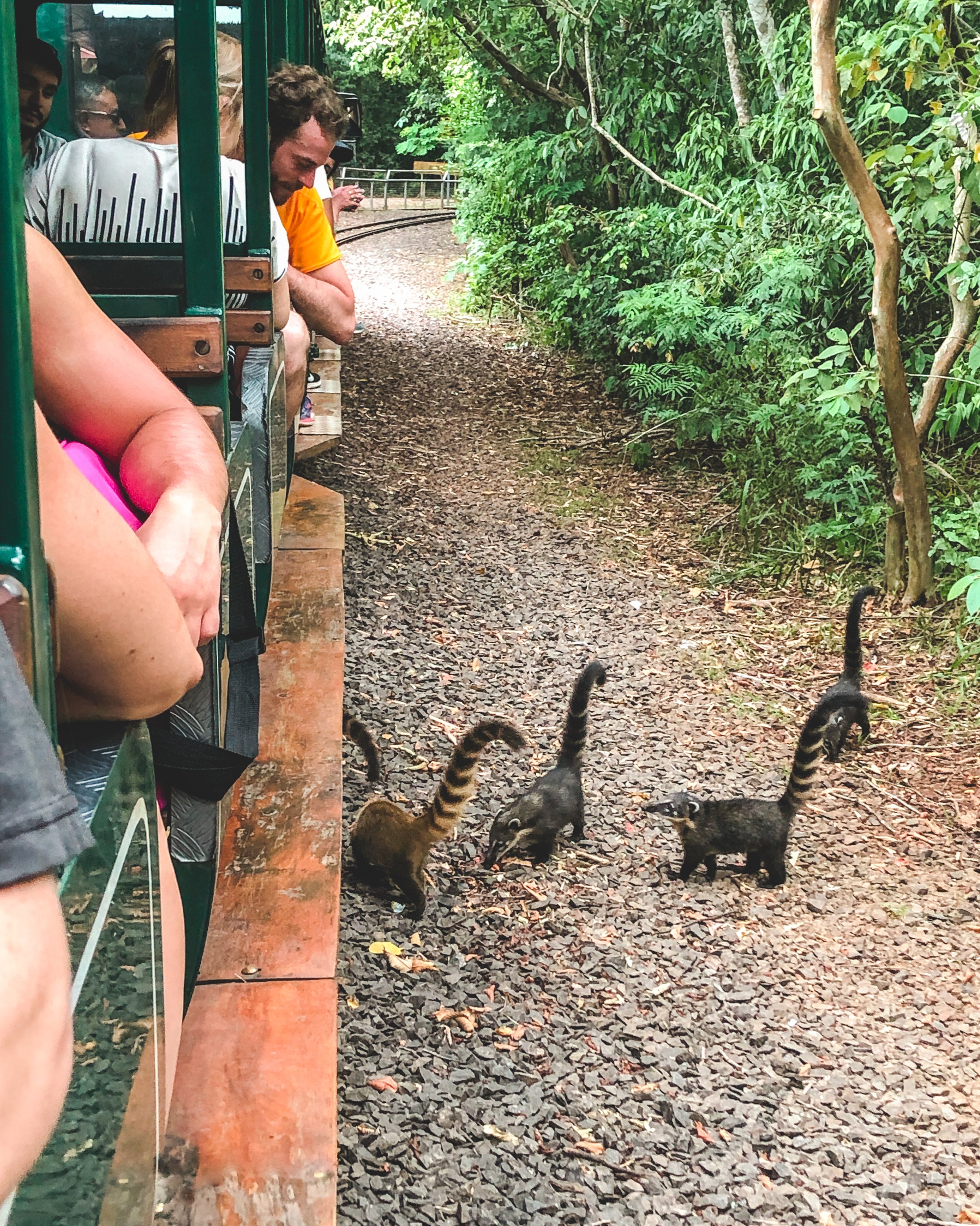 We hopped on the Tren de la Selva and found an outdoor food court for some lunch. There are signs throughout the park but especially in food areas mentioning the Coati (an adorable cousin to the raccoon) who are not afraid of people and will come up and steal your food. The signs all say not to feed them and have an example photo of a bloody bite on someone’s hand to be explicitly clear. We did our best to give them a wide birth, but they were quite persistent climbing over themselves to get to food and I enjoyed taking some photos of their efforts.